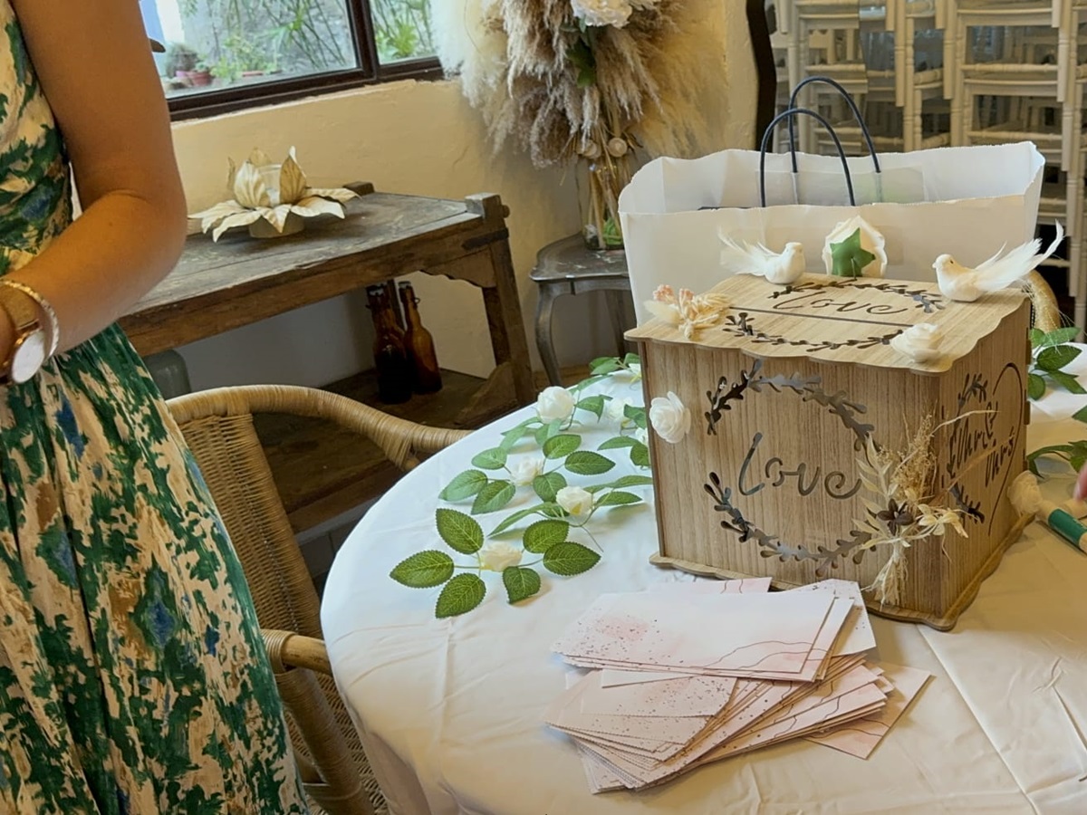 In French weddings, it’s becoming more common to see a wedding urn or gift box. Instead of traditional material gifts, guests can slip an envelope with money to help the newlyweds fund their honeymoon or another important project. It’s a modern way to support new couples. It must be said that today most couples who get married have already lived together for several years and generally already have everything they need. As a result, most couples no longuer come up with a wedding gift registry.