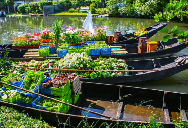 Pour sillonner ces canaux, on monte à bord d’une barque à cornet ou une barque motorisée pour une promenade sur l’eau où l’on écoute attentivement le guide. On découvre également les maraîchers jardiner, pêcher et pique-niquer sur leur jardin flottant. Et pour les plus friands de balades, vous pouvez même emprunter à pied ou à vélo un chemin traversant tous ces beaux jardins pour apercevoir les petites cabanes et ponts qui passent au-dessus des canaux.