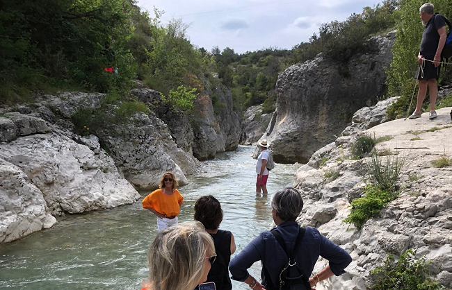 Un après-midi, Hervé nous a emmenés dans les Gorges du Toulourenc au pied du mont Ventoux. Il connait bien les lieux car ses parents y avaient une maison et il y venait chaque année en vacances. C’était une baignade rafraîchissante en eau vive qui nous a tous ravis !!